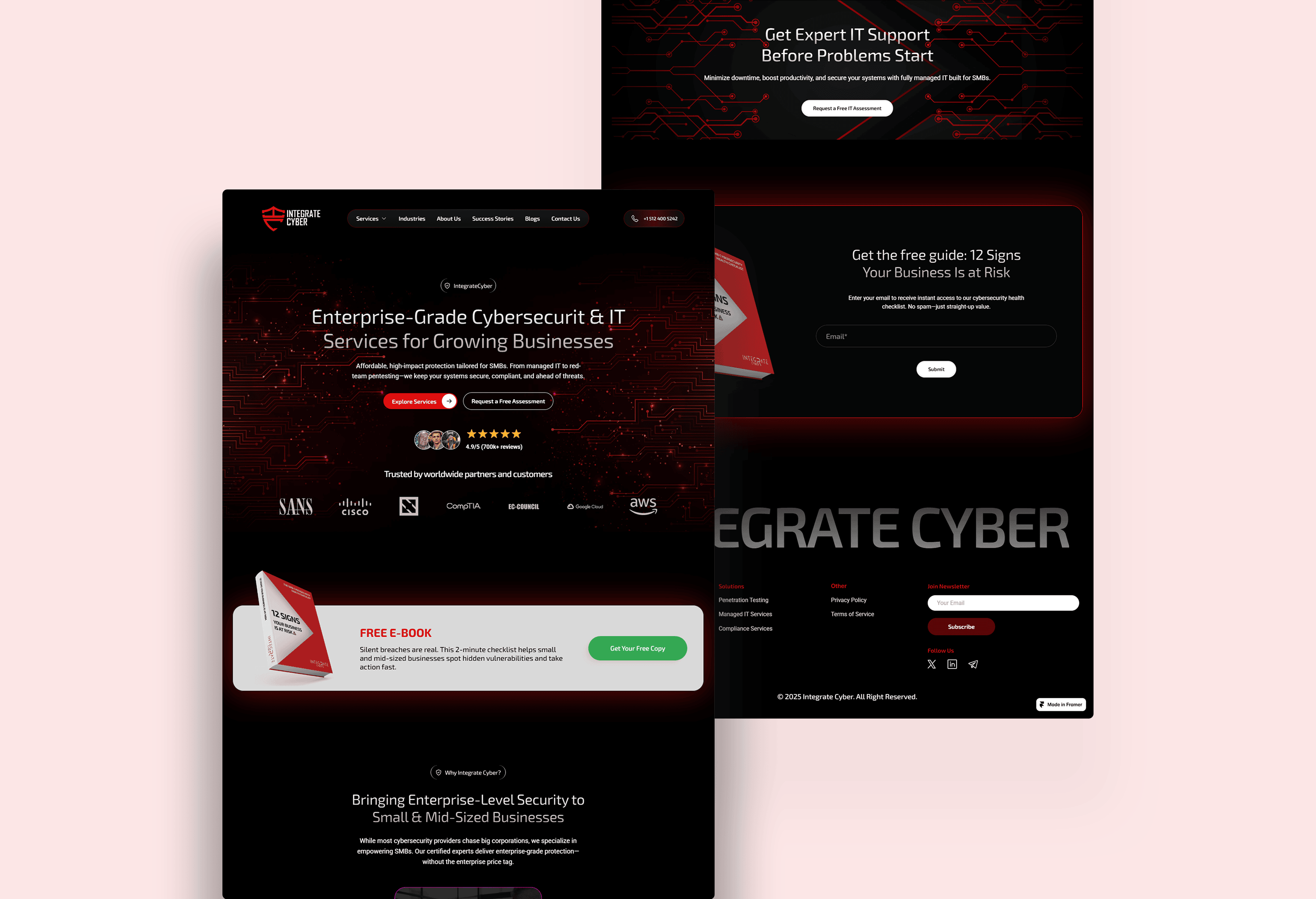 The final experience communicates technical competence and operational maturity. Integrate Cyber now presents its services with clarity and confidence, improving lead quality and supporting higher conversion from business decision-makers seeking security and compliance solutions.
