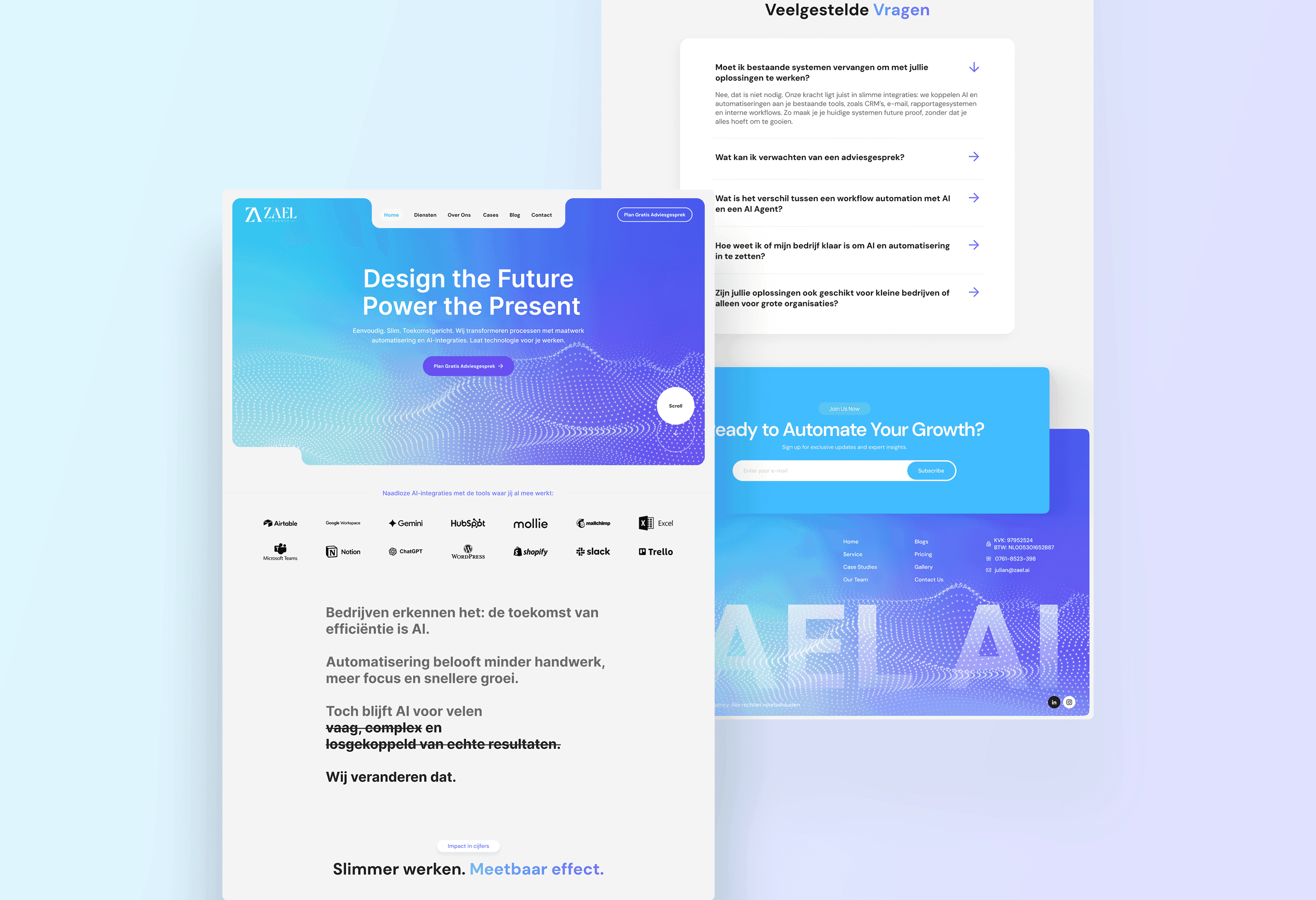 Zael AI is an automation-focused platform designed to help businesses streamline workflows and reduce operational friction through intelligent systems. The objective was to translate complex AI capabilities into a structured, credible, and outcome-driven experience.