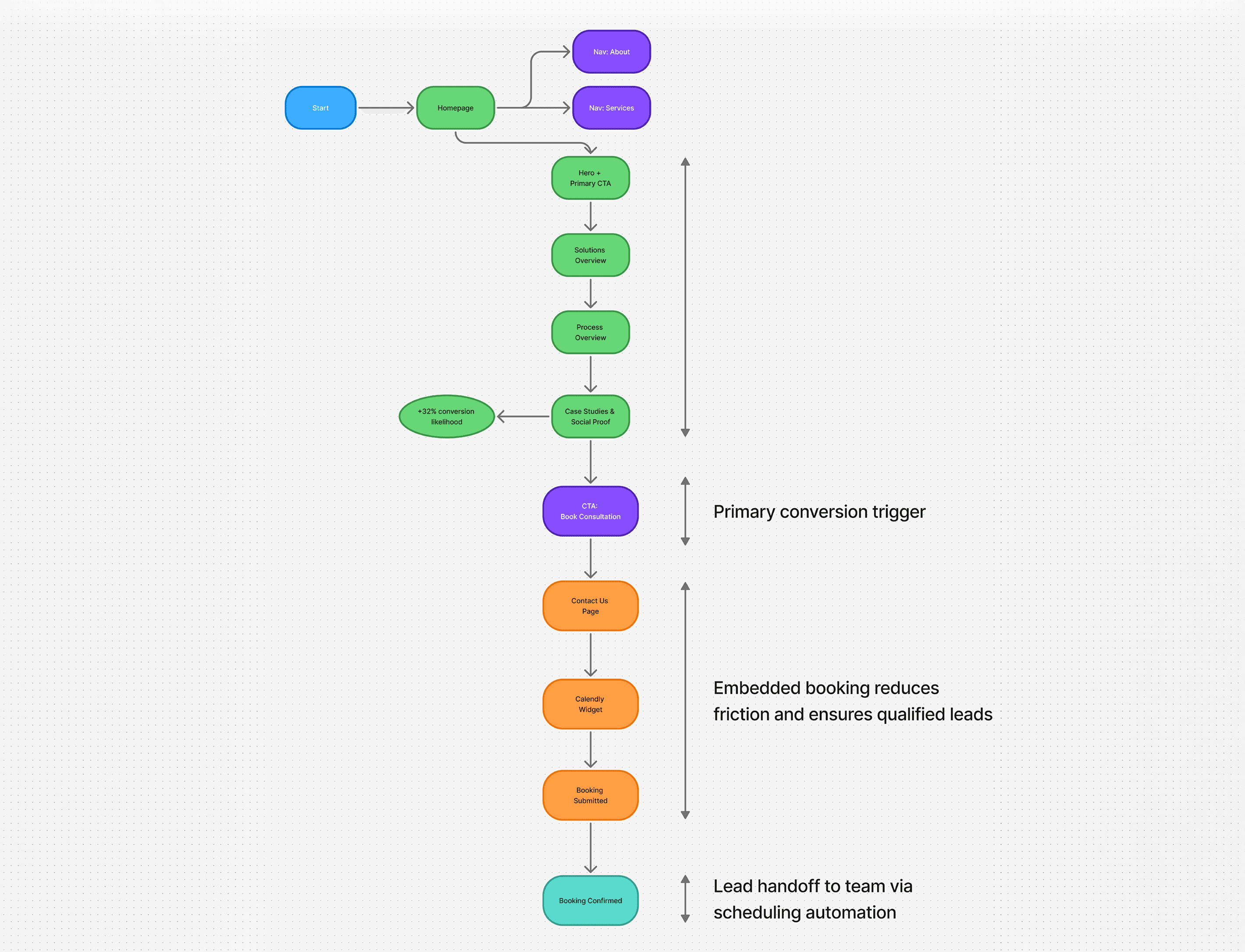 The experience was built to guide users logically from workflow inefficiencies to system capabilities and expected outcomes. Each section supports the next, creating a clear path that mirrors how businesses evaluate automation tools.